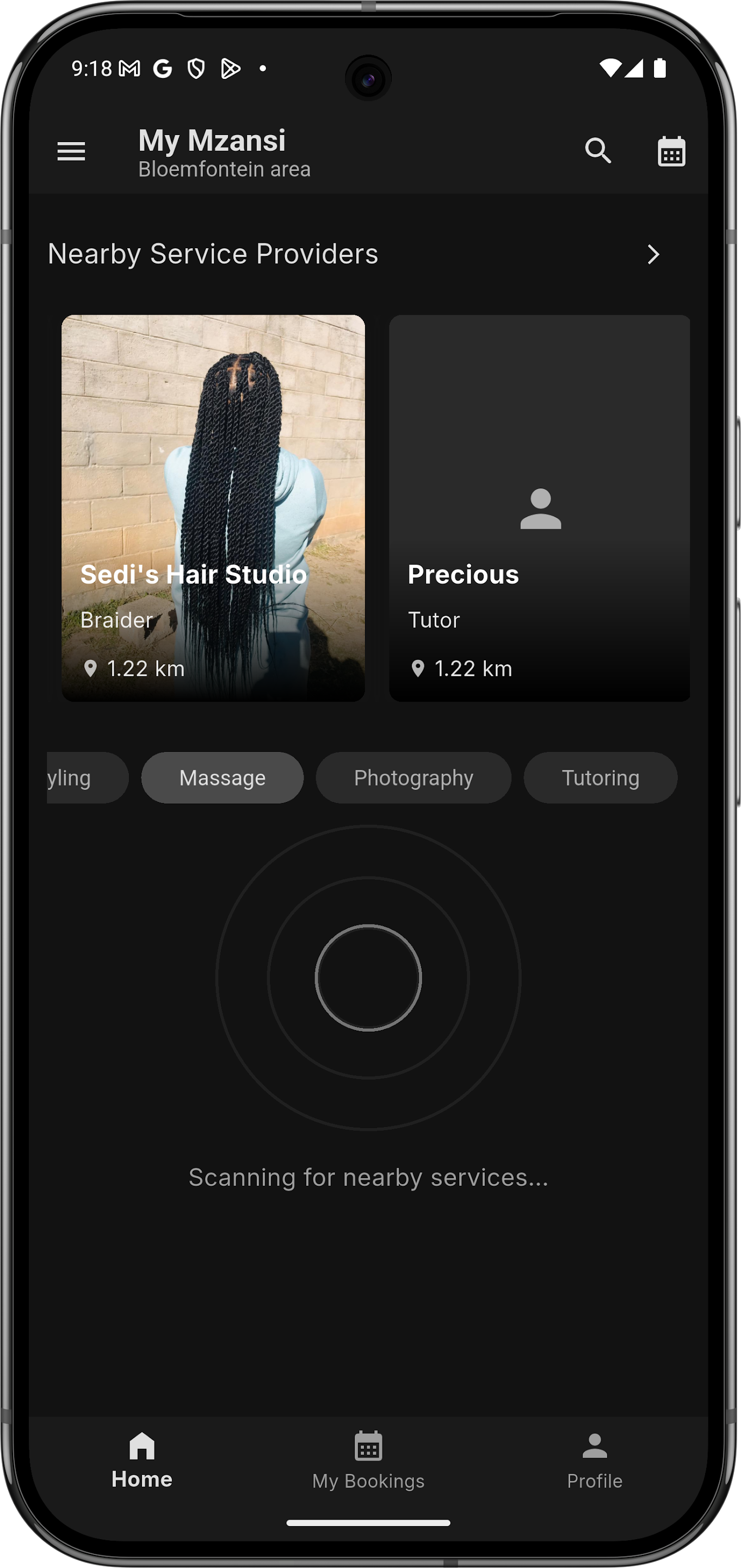 My Mzansi is a mobile app that helps people find and book nearby service providers such as braiders and barbers to nail technicians, tutors, and more.